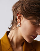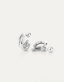 Dramatic and voluminous, this custom design creates the illusion of two earrings stacked together. Finished in high-polish silver.