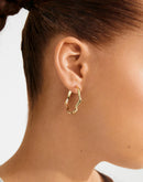 The LARKIN earrings by Pilgrim feature a wavy,freeform silhouette - a fresh take on the classic hoops. The gold-plated or silver-plated wavy hoops have a minimalist yet impactful design that beautifully catches the light and creates a playful, stylish expression. The easy-to-use snap lock ensures a comfy fit – a go-to piece that's perfect for both everyday looks and special moments. Style them with a flowy shirt and loose waves for a dreamy, boho-inspired feel, or let them shine solo with sleek, minimalist styling. Made from 99% recycled materials – fashion with care!