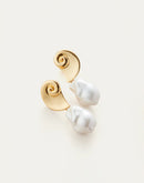 The unique quality of a glass baroque pearl is celebrated in this pair of drop earrings, which is suspended from a nautilus. Finished in high-polish gold.