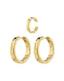 Kindness is free, sprinkle it everywhere! With this set from Pilgrim's Kindness collection, you get a pair of hoops and an ear cuff with an organic embossed structure and shiny surface. The irregular shapes of the earrings give a handcrafted quality feel to the classic design that gets a little edge with the matching ear cuff. Perfect basic piece for winter outfits.