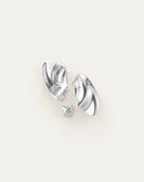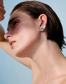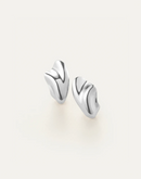A sculptural mid-sized button earring. Inspired by the organic form of a scalloped seashell, these silver earrings can be worn climbing up the ear or fanning down and out. Finished in high-polish silver.
