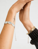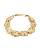 The gold-plated or silver-plated SHIFT bracelet from Pilgrim is a must-have for those who love unique accessories with character. The flat, wavy coins have a raw, textured surface that gives the jewellery a cool handcrafted feel. A perfect combination of boho elegance and classy style. Wear it alone for a minimalist statement or stack it with more bracelets for a personalised mix. Perfect with a chunky turtleneck and wool cape for a cozy winter-chic look. Made from 99% recycled materials – an eco-conscious choice