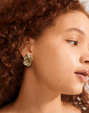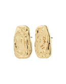 The gold-plated or silver-plated SHIFT earrings from Pilgrim add a chic fashion-forward touch to your outfit. The rustic, flat shapes of the earrings with a raw finish beautifully catch the light and give your look an exclusive handcrafted vibe. Perfect for both everyday glam and standout moments. Style them with a high-neck top and lightly wavy hair for an effortless expression. Made from 99% recycled materials – a stylish detail with care.