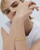 Equal parts feminine and masculine, the Walter Bracelet boasts flat, curb chain links that sit comfortably on skin. This top rated piece will finish any outfit with ease. Wear Walter on its own or mix with more structured bangles and personal pieces. Finished in high polish gold.