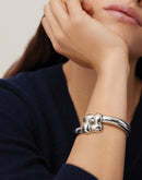 A bold woven square motif turns this bangle into a statement piece. Chic and modern with water-resistant engineering, you'll be reaching for this design on repeat. It boasts a flattened interior for comfortable, all-day wear. Finished in high-polish silver.