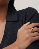 A classic woven square motif melds into the band of a gold ring. With rounded peaks adding volume and texture, this ring offers an updated take on estate jewelry. This piece is water-resistant. Finished in high-polish gold.
