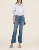 - Classic and casual-chic, these ankle-cropped flares jeans are made from premium stretch denim and faded for a lived-in look with our Fab Ab front pockets that smooth and add comfort.