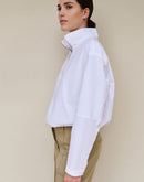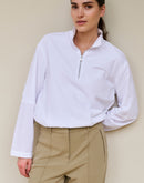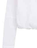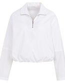 Effortlessly chic and wonderfully versatile, this cotton blouse marries playful design with refined simplicity. The distinctive balloon hem creates movement and visual interest, while the polo collar and short zipper closure deliver a sporty-elegant aesthetic. Long sleeves with finished cuffs provide structure and polish. Crafted entirely from breathable 100% cotton—both fabric and lining—this piece offers all-day comfort without compromise. Layer it over basics or wear solo for an understated statement that transitions seamlessly from casual to polished occasions.