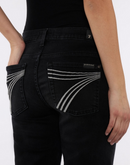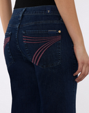 Seven for all mankind's signature trouser jean features a wide leg with a subtle flare for a long, lean line—and the Tailorless version offers a shorter inseam while keeping the silhouette intact. The medium blue wash is artfully faded for extra dimension and features our iconic 7 back pocket embroidery in a contrast white stitching.