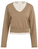Elevate your everyday wardrobe with this sophisticated soft sweater. The refined V-neckline and long sleeves are accented with contrast detailing at the neckline and hem, creating an effortless layered aesthetic without the bulk. Constructed from a fine knit fabric with a flattering regular fit, this versatile piece transitions seamlessly from casual to polished occasions. A timeless essential that pairs beautifully with both denim and tailored pieces.