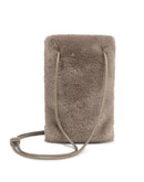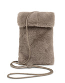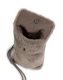 This compact phone bag features a soft teddy texture and a practical flap closure. The long cord allows for easy crossbody wear. Perfect for keeping your phone and essentials close at hand in a cozy and stylish way. A playful accessory for everyday looks.