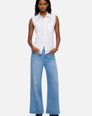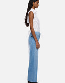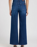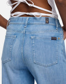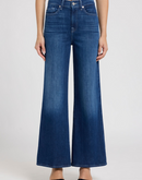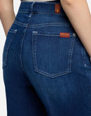 The Lotta Ankle in Stormy Drift offers a contemporary high-rise, wide-leg silhouette that sits comfortably at the waist and hip before cropping at the ankle for a clean, modern line. Crafted from breathable denim with a soft hand, this dark wash style moves with ease and wears light against the skin. Detailed with a zip fly and button closure, clean back pocket, signature waistband tab and pocket flag, plus distinctive heavy whiskering and fading along the thighs. Style No. 7U6P0R51-3DO.