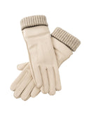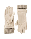 These elegant leather gloves are lined and finished with soft knitted cuffs for added warmth and comfort. The refined stitching on the top adds a classic touch, while the elastic detail on the inside ensures a snug fit. Perfect for cold days with a sophisticated look.