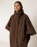 Navigate rainy weather with understated sophistication in this waterproof cape. Designed for those who value both protection and refined style, it combines lightweight construction with practical functionality. The high hood and adjustable back elastic ensure a secure, personalized fit, while the dramatic batwing sleeves and cape silhouette make a polished statement. Built from water-repellent technical fabric with sealed seams, it shields you from the elements without sacrificing comfort or movement. The oversize cut allows for layering versatility, making it an essential piece for your transitional wardrobe.