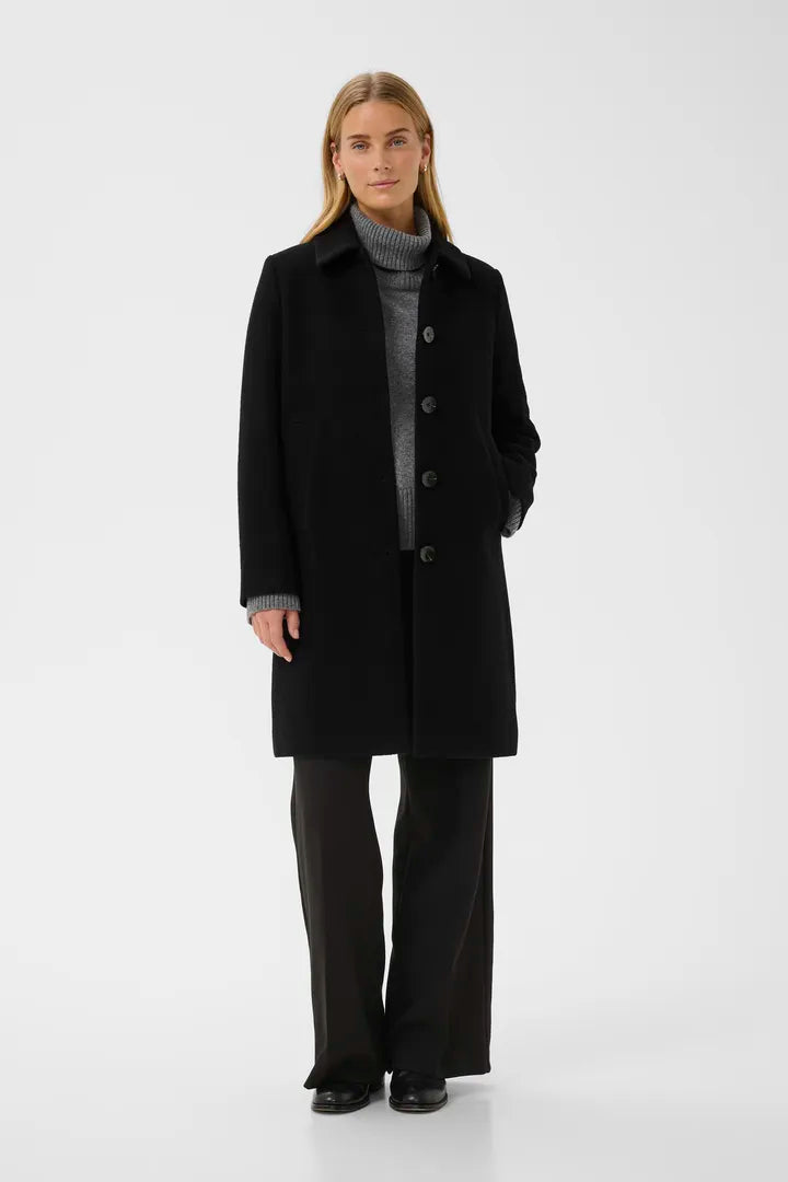 A classic wool coat with a sleek, minimalist silhouette. Designed with a structured fit, classic collar, and button closure, it combines timeless elegance with everyday practicality. The versatile design makes it perfect for la...