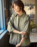 This shirt in a cotton blend features a slightly structured texture and a minimalist design with press buttons and a single chest pocket. The olive green shade adds warmth and versatility to your wardrobe.