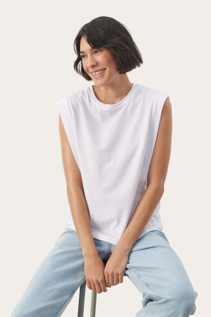 This striped tank top is the essence of casual chic. With its timeless stripe pattern, comfortable fit, and flattering round neckline, it is a steadfast classic in any wardrobe. Pair it with your favorite jeans for a r...