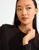 Go with all your heart! The large, oval ELIJAH hoops from Pilgrim, crafted in black recycled acrylic, add an edgy retro touch to your favourite autumn-winter styles. Perfect for those looking for a street-ready accessory and who cherish a classic urban look! Style the earrings with a chunky jumper and an oversized blazer for a laid-back elegance that transitions effortlessly from day-to-night. And guess what? - ELIJAH earrings are made from 100% recycled material - that's fashion with a conscience.