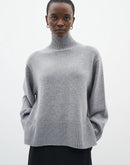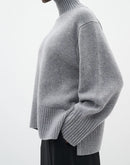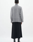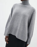 This women's turtleneck sweater features a relaxed fit and wide ribbed hem, providing comfort and style. Perfect for layering, its long sleeves and high neckline offer versatile, timeless appeal for work or casual wear.
