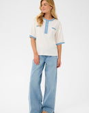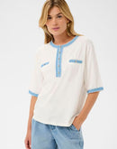 Soft and versatile knitted tee featuring a classic front button closure and three-quarter sleeves. The premium fabric blend of 80% cotton, 18% polyester, and 2% elastane delivers breathable comfort with gentle stretch for all-day wear. Perfect for layering or wearing solo, this essential piece transitions effortlessly from casual to polished looks.
