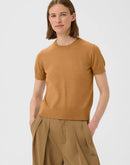 This classic short sleeve sweater for women offers a regular fit, ribbed crew neckline, and comfortable soft knit fabric. The versatile design makes it ideal for layering or standalone wear, perfect for various occasions.