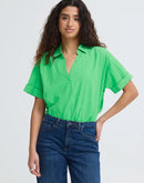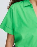 The Mana Blouse is a versatile wardrobe essential featuring a boxy silhouette with a modern cropped hem. Crafted from 100% cotton with a smooth finish, this short-sleeve piece offers a relaxed, loose fit perfect for layering or wearing solo. The open collar and V-neckline add contemporary style, while the breathable fabric keeps you comfortable throughout the day. Effortlessly chic for casual outings or dressed up for work.