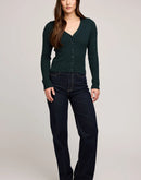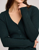 The Mia top is made of a soft yarn in a novelty stitch pattern. Features include a v-neckline and functional button front closure.
