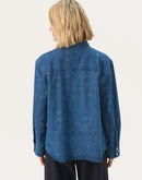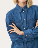 This denim shirt features a relaxed fit and an embossed pattern that adds a playful twist to a classic design. With a chest pocket and snap buttons, it’s both practical and stylish. Wear it open over a T-shirt or closed as a shirt – perfect for everyday and weekend wear.