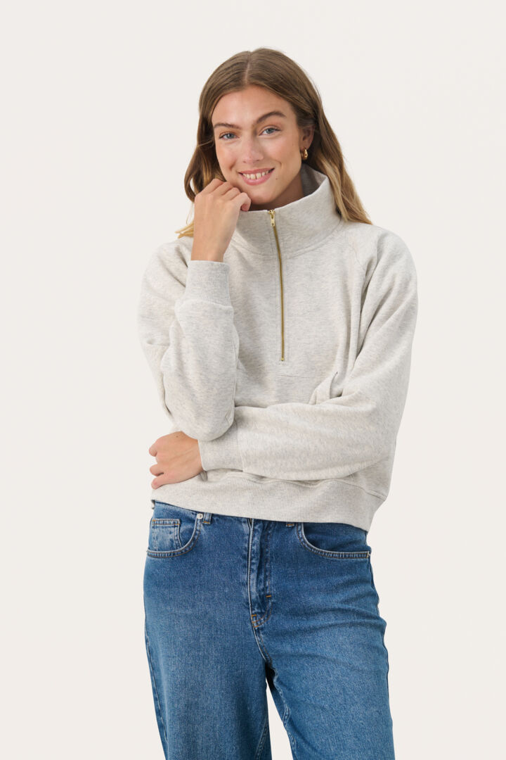 Stay warm with this comfortable high-neck zip sweater. Made from soft and cozy material, ensuring optimal comfort. Perfect for relaxed days or a cozy evening at home. Pair with your favorite jeans for a casual look.
