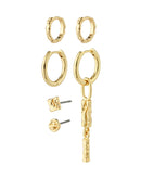 The STARS live within you. Discover your inner star with the gold-plated earrings from Pilgrim's STAR collection. The 3-in-1 set features an asymmetrical combination of studs and hoops that create a unique and trendy look. Edgy details with uneven surfaces give a handcrafted feel that you can mix and match for a trendy curated ear look. Here you really get the opportunity to experiment and create a personalised look. Let the stars live within you!