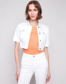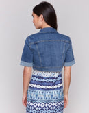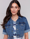 Cropped Denim Jacket with Short Rolled Sleeves and Front Chest Pockets