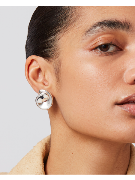 Discover our most talked-about earrings. Dramatic and voluminous, this custom design creates the illusion of two chunky hoops stacked together, with a flat disc backing for additional support. As seen in VOGUE, Marie Claire, WHO WHAT WEAR, Byrdie and GMA. Finished in high-polish 14k gold.