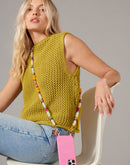 Jody phone chain in multicolored beads, 120 cm long, clips onto our ring cases or our universal adapter with its rotating carabiners. Its plus points? Its engraved LCF medal, its bright colours.