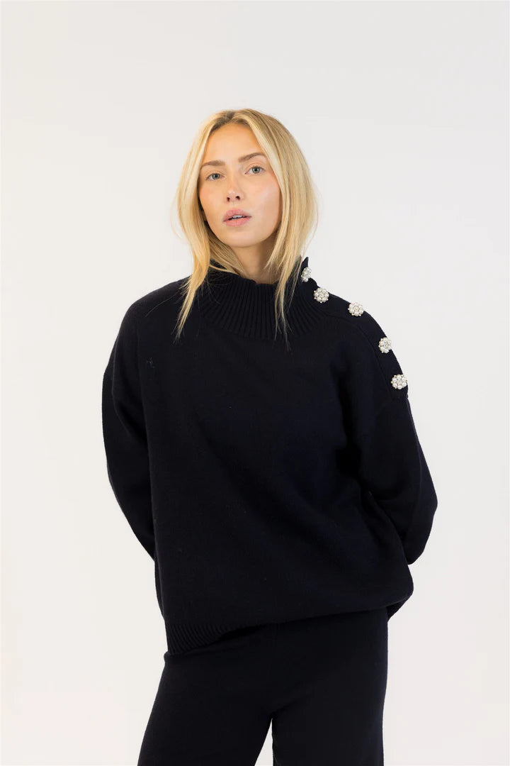 This women's pullover sweater offers a regular fit with a subtle high neckline and decorative knit detailing on the upper chest. The long sleeves and soft material ensure all-day comfort, perfect for versatile everyday wear.